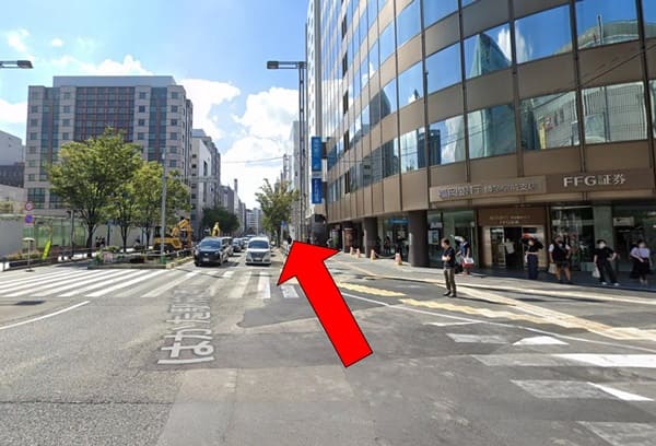 横断歩道を渡ったら、はかた駅前通りに沿ってそのまま直進しましょう。