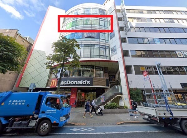 少し歩くと左手にマクドナルドが入ったビルが見えてきます。