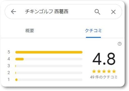 チキンゴルフ西葛西店は比較的新しい店舗ということで、まだ悪い口コミがないのかもしれません。