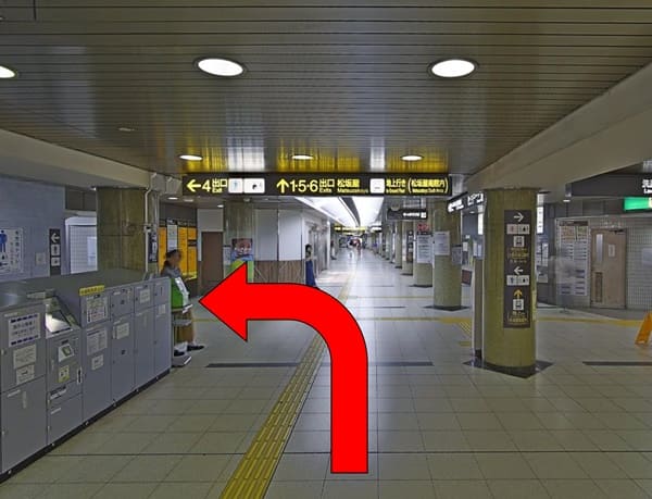 まずは矢場町駅の南改札口を出て、4番出口に向かって進みます。
