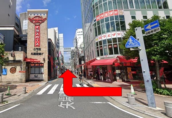 そのまま矢場町通を歩いていくと、左手にフライングタイガーが入ったビルが現れます。