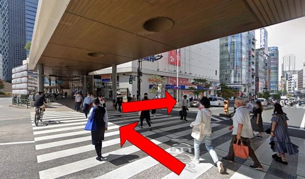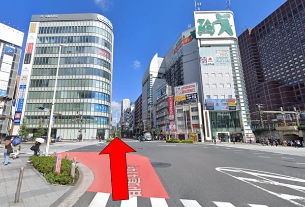 しばらく歩くと大きな交差点(新宿大ガード西交差点)に行き着きます。