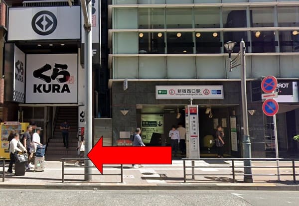 まずは新宿駅の西口を出て右に進みましょう。
