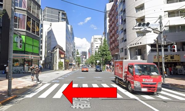横断歩道を渡ってすぐのところにセブンイレブンの入ったビルがあります。