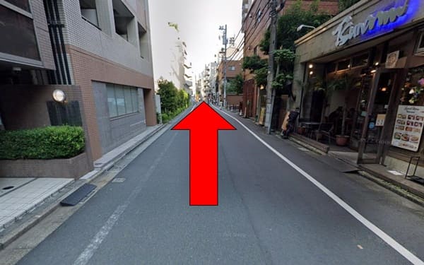 横断歩道を渡り、サイゼリヤの横を通って道なりに進みましょう。