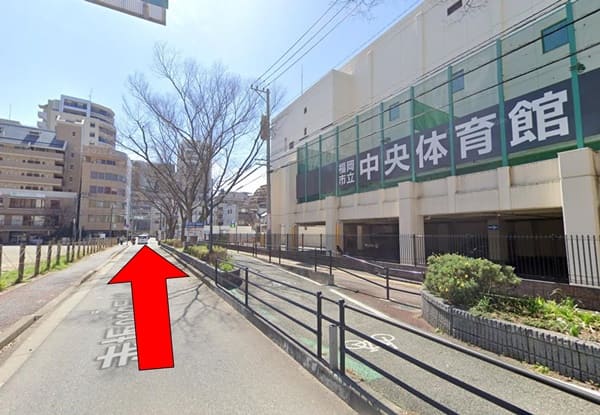 福岡市立中央体育館の前も通り過ぎてさらに直進。